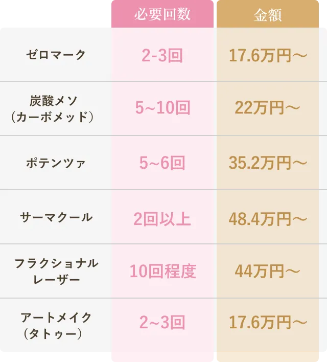 少ない施術回数かつ、 他のマシンに比べて施術費用が安いためトータルコストが抑えられます。
